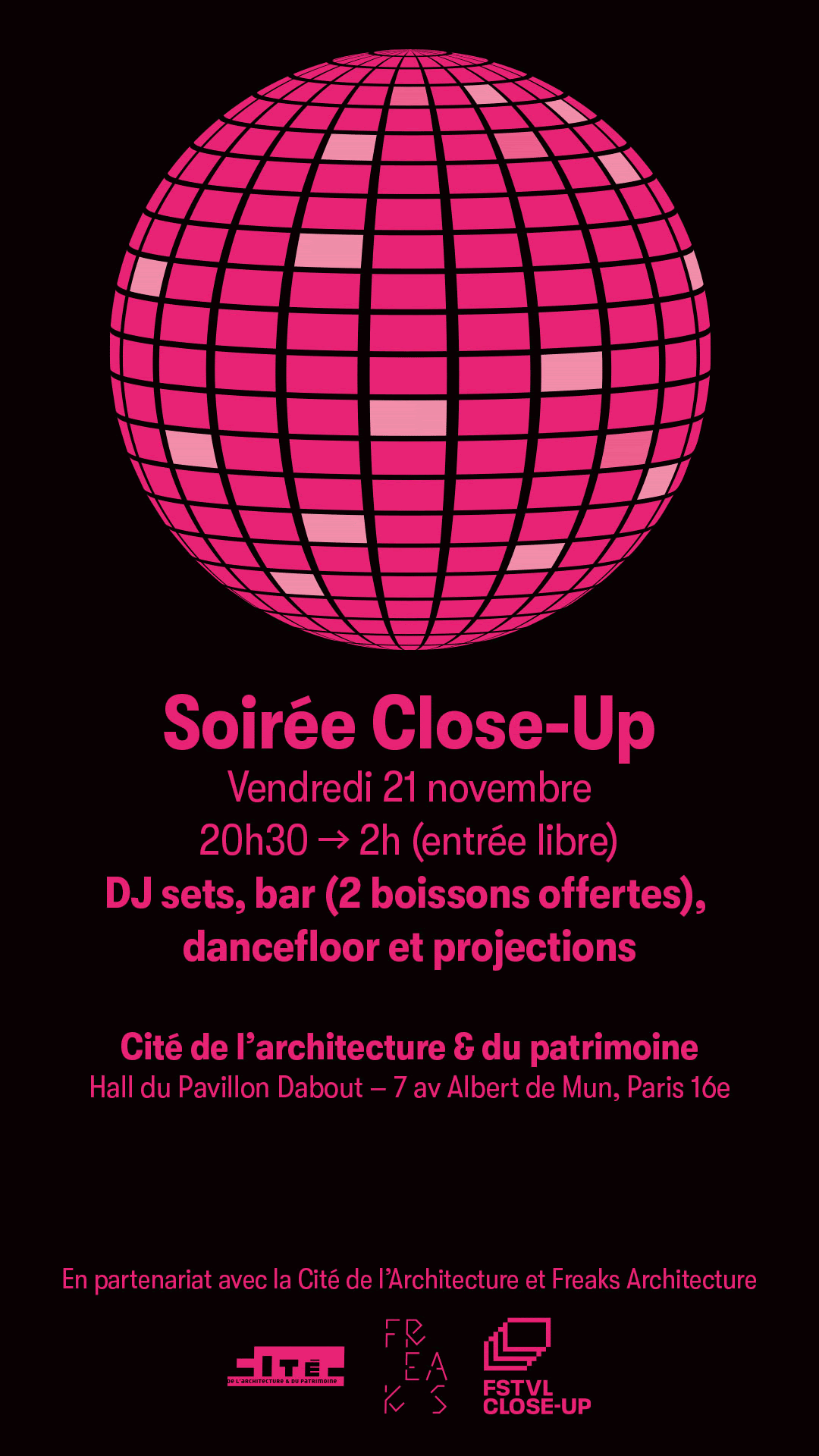 FREAKS a l’honneur d’organiser la soirée Close-Up à la Cité de l’Architecture et du Patrimoine, dans le cadre du Festival Close-Up 2025 – Ville, architecture et paysage au cinéma !